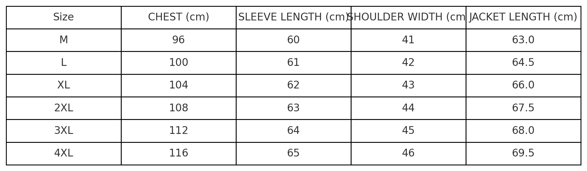 | 54 | XXL | 104 – 108 | 92 – 96 |